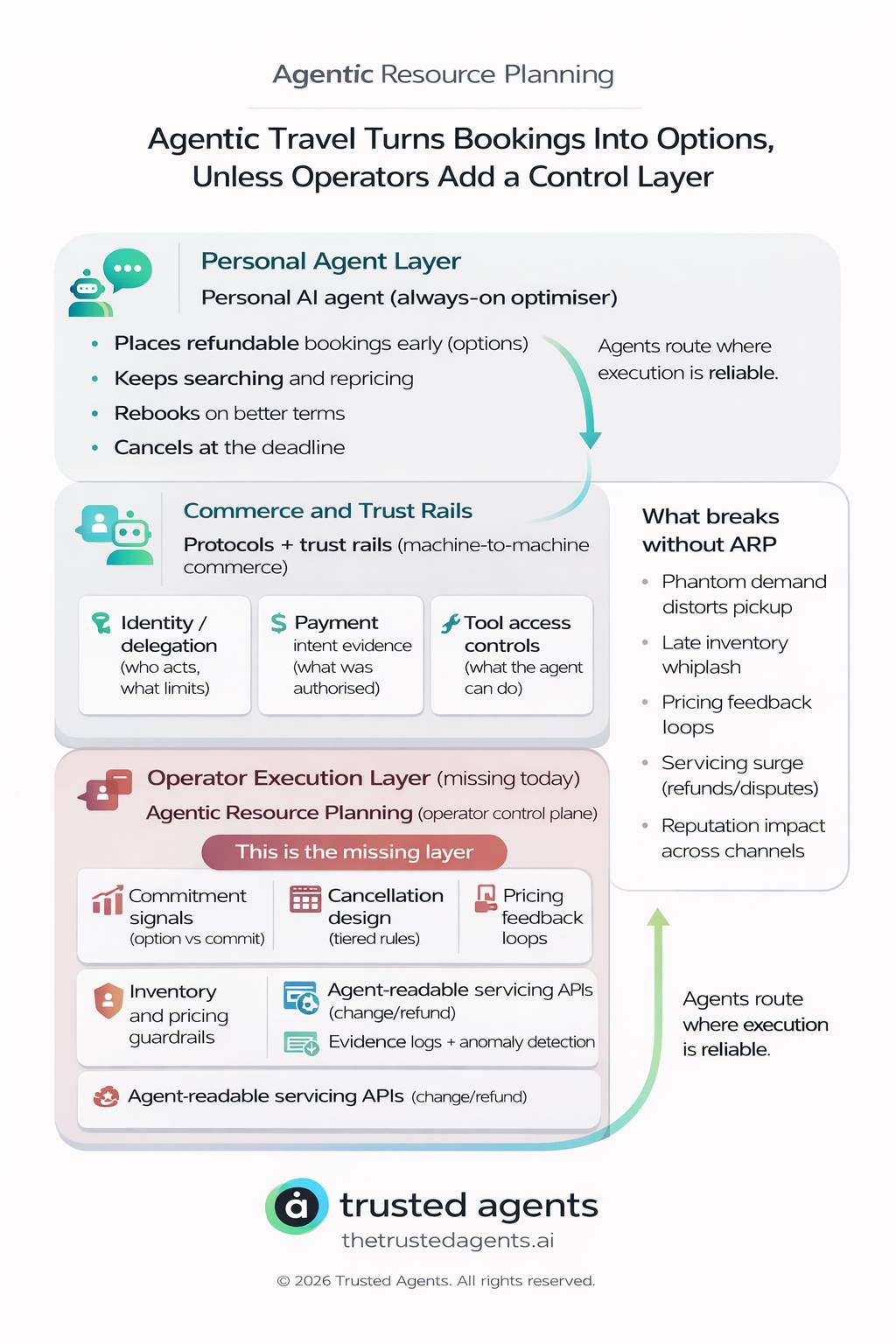 This is the layer we think is missing from most roadmaps: Agentic Resource Planning. Not a new chatbot. The operational control plane that makes agent demand governable and fulfilment predictable. In travel, that means treating inventory, pricing, servicing, and exceptions as agent-readable systems, with clear commitment signals and limits.